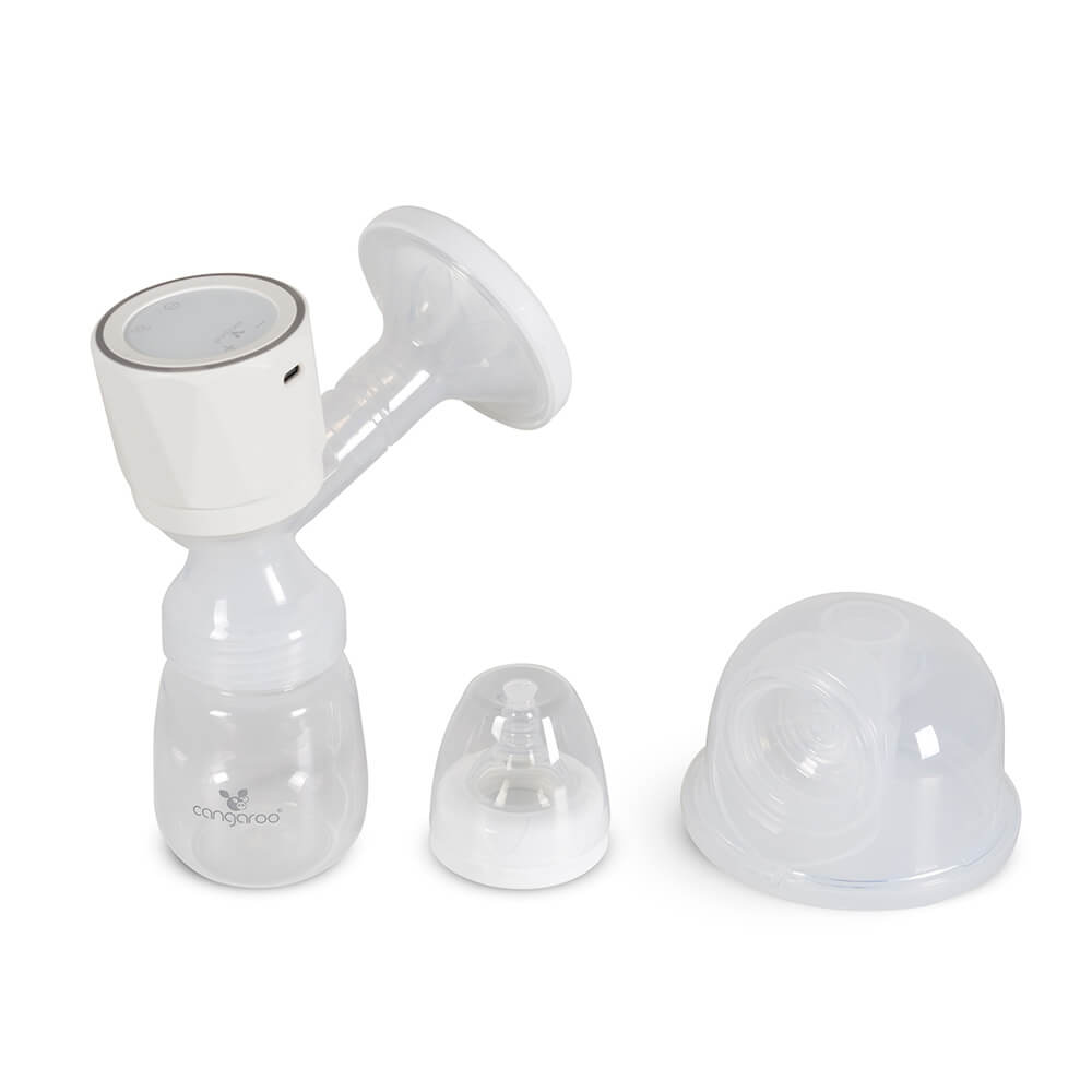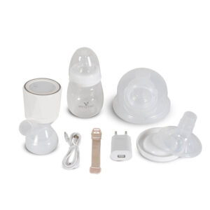 U pakovanju dobijate kompletan set: posudu za mleko od 210 ml, flašicu od 180 ml, silikonsku cuclu, ventil, kopču za grudnjak i punjač.