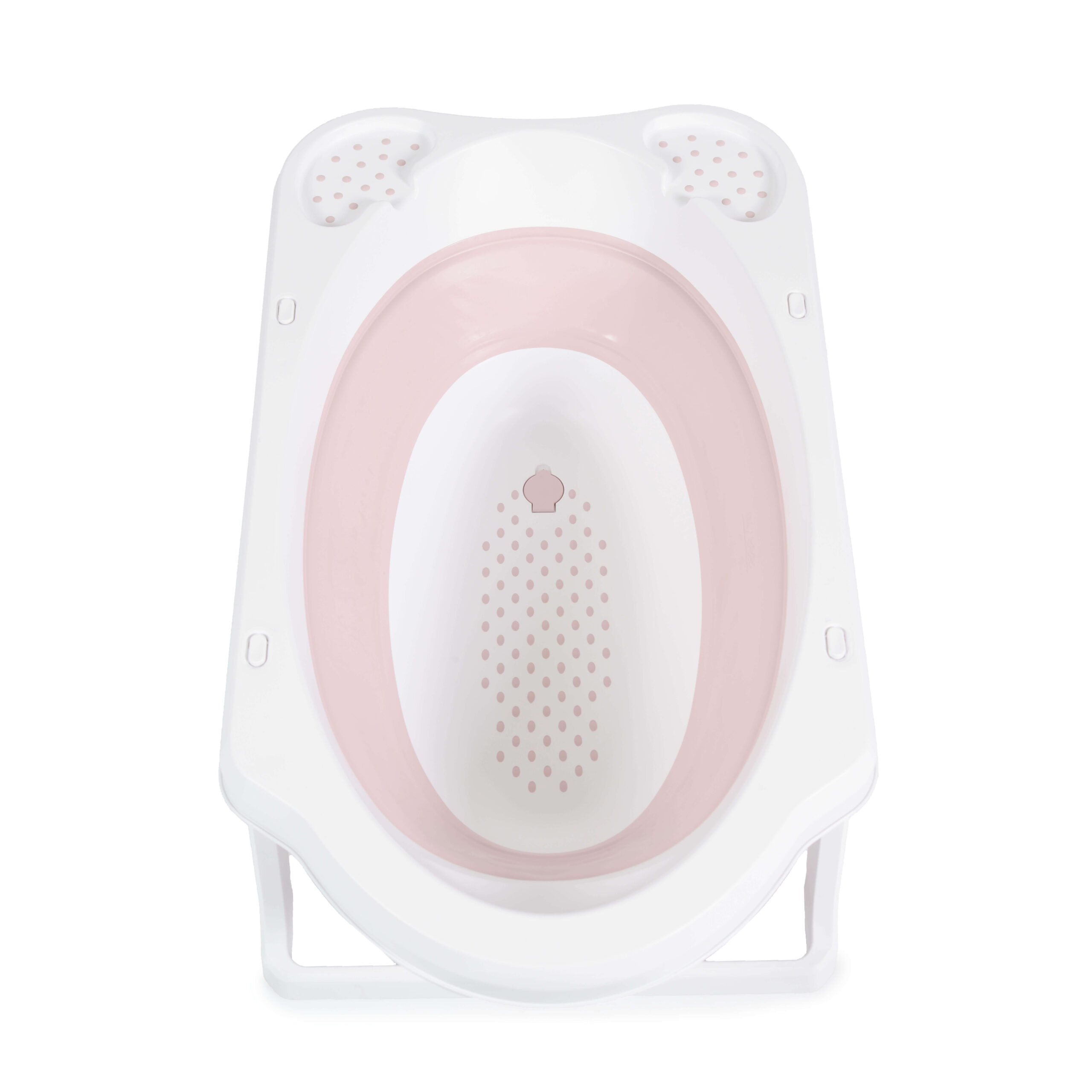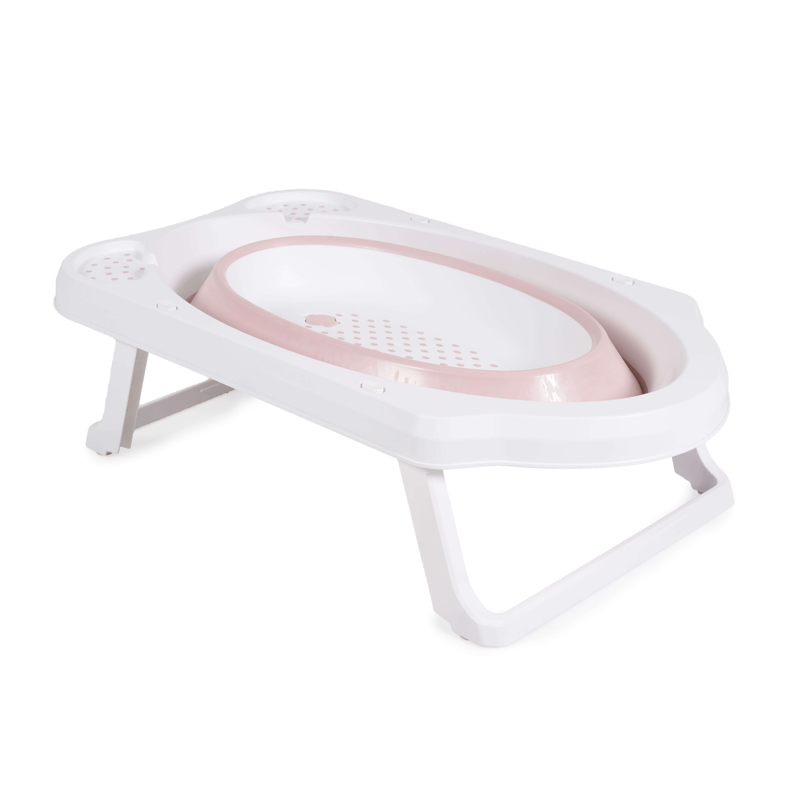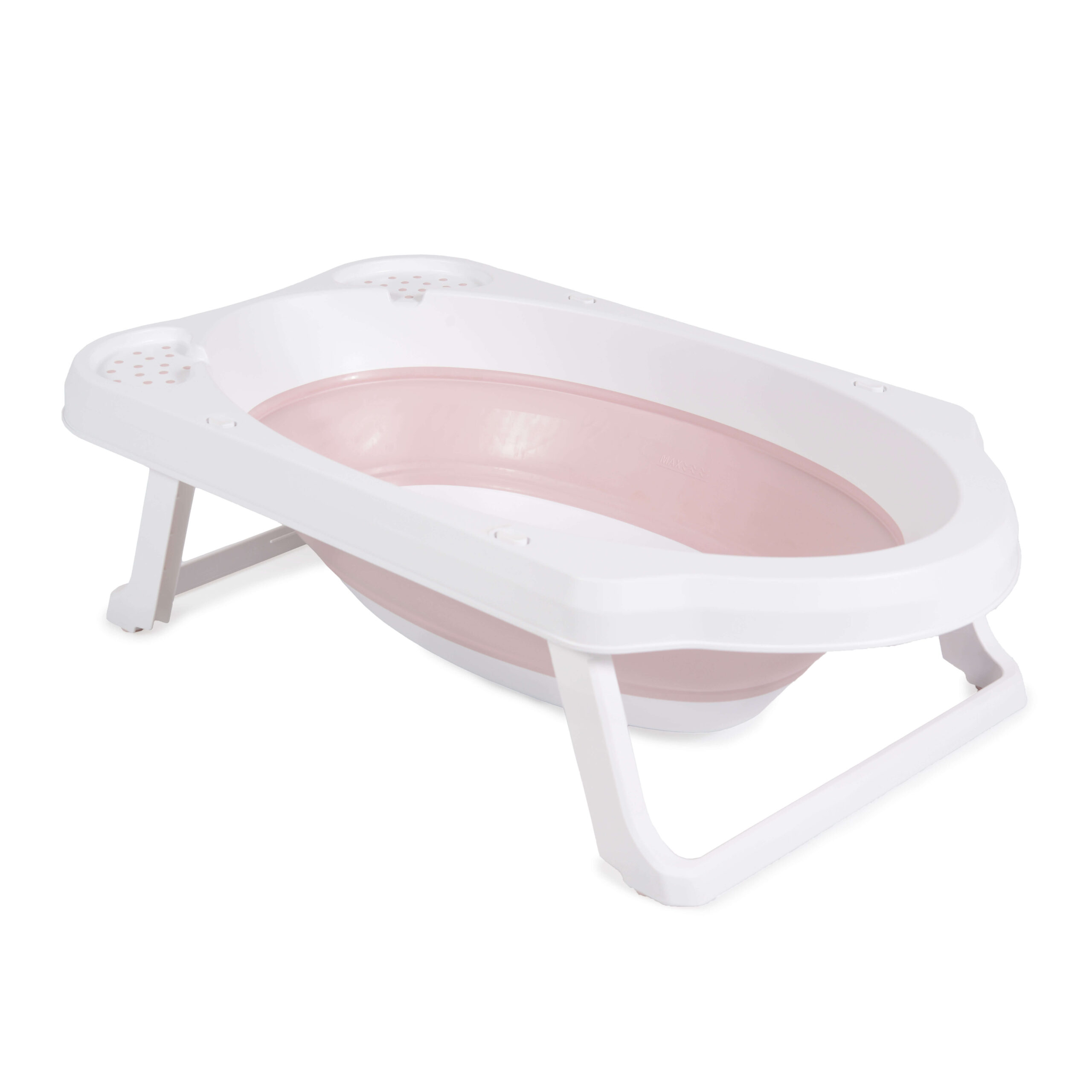 Sklopiva kadica ima protivkliznu podlogu na dnu i protivklizne čepove na nožicama, što obezbeđuje stabilnost tokom kupanja. Dva odeljka na kadici omogućavaju da sapun, šampon ili sunđer budu uvek pri ruci. Otvor za ispuštanje vode olakšava pražnjenje kadice bez podizanja i prosipanja.